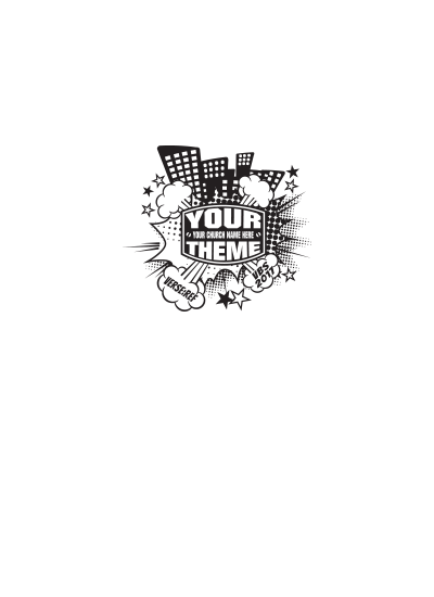 Explosions! Stars! City! This design flat-out says heroic. All it’s missing is your fabulous church. Oh and your theme of course. Along with your verse. Discover your strength in God and see just how many heroes exist.