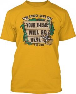 It's VBS season again! And we have new shirt designs for you to choose from. This design right here has that adventure-y feel to it. And we know you love adventure. Which is why we offer you the liberty to customize this shirt any way you want for free. You can start by checking out this color. For other ways to customize your shirt, check out our other designs here.