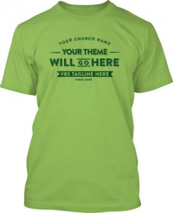 When it comes to choosing shirts for your VBS Staff, nothing beats a simple and straightforward design like this one. The church name and VBS theme are highlighted, as well as your team's tagline. If you wish to add your names on individual shirts, you may do so. For other customization preferrences, you may fill out the form below or give us a call. Split your order up into different color shirts within the same order, so you get different shirts for your staff, older kids, and younger kids. The best part is that it costs nothing to add this variety. Read more »
