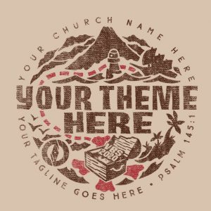 I think I see something! Something tiny and brown! Wait–is that sand in my magnifying glass? Whoops! We chose beachy colors for this design, but we’d love for you to make it all yours. Pick your own colors then send it to us (through the form on this page) and we’ll mock it up with your theme, church, tagline and verse -- all totally free of charge. No mysteries here! mystery, island, vbs, mountain, treasure Read more »