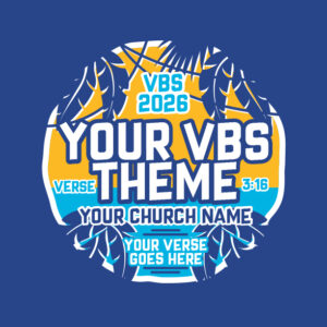 Pretty cool, huh? It’s amazing what you can do with a few different shades of the same color. The 3D effect of this design is sure to make you the talk of the town (second to Jesus, of course!). With bright colors, a modern font and your personalized church name you’ll be VBS-ready. Here’s to an awesome summer!