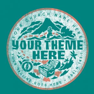 Snow falls and dragons soar around the King’s great castle! Pull this design out of the armory and get your VBS kids ready to face a great challenge, the quest for the King’s armor! This design is super budget friendly and kid-friendly, just pick your colors and we’ll customize it with your church name, tagline, theme and verse, free! Did you know shipping is free, too?