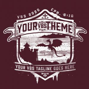 Through the clouds and over the frozen lake, the King’s dragon is souring around and protecting the castle! Though obstacles lay ahead, we have the armor of the King to keep us safe and strong! Start with a good underlayer like this crest t-shirt! Pick your colors and we’ll decorate it with your church name, verse, and VBS name!