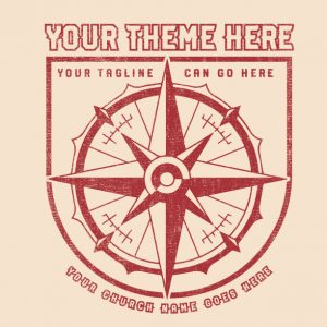 Brrrr! It’s gearin’ up to be a chilly one out there! But fear not! Warm up this VBS with this friendly fire-breather -- shield, sword and all. We’ve kept this design bold but simple and we’re chomping at the bit to fill it with your theme, tagline, church name and more. Team up with one of our crew and we’ll personalize everything exactly to your liking. Now flap those wings and let’s take off!