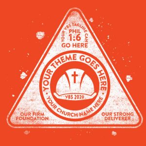 Who doesn’t love taking a hammer to old drywall and getting a little dirty every once in a while? Especially when you’re getting ready to build on the love of Jesus! Your VBS is the perfect time for your VBS kids to let loose and practically learn about how God works in us, and carries it out to completion. We would love to customize this design with your theme, verse and church name, just fill out the form!