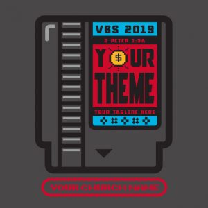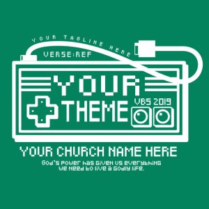 Pew Pew Pew! Zap zing zow and other fun sounds! Press START for the highest scoring (and most memorable) VBS ever. The lightning bolt and font on this design may be pixelated but you’ll still make a bold statement when you sport this video game-inspired option. Let us know how we can customize it for you!