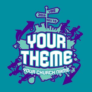 This way! Now that way! Back the other way! The world is full of twists and turns but when our compass is pointed toward Christ we’ll always be on the right path. Run your VBS race with this sleek arrow-inspired design. The text, ink colors and shirt color are all awaiting your customization. Let’s work together!