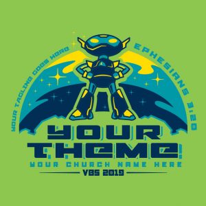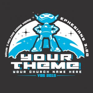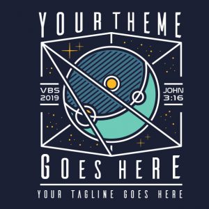 The sun and moon may be lightyears away but God is always right by our side. Stand firm in the knowledge that He will never leave us or forsake us! Let’s give Him glory for all He has done - and let’s get you an out-of-this-world shirt for your VBS! Replace the robot with your own character or change the planet's colors altogether.