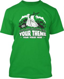 It’s time to cheer the big game on! Let’s get LOUD! But what’s a team without a snappy looking uniform. Gear up your Vacation Bible School kids for the big game with this awesome sports themed VBS t-shirt design. The best part is that every design we make is 100% customizable to your needs. We can make it all your own by changing colors, words, and church name. You name it, we can do it!