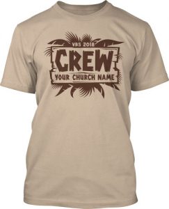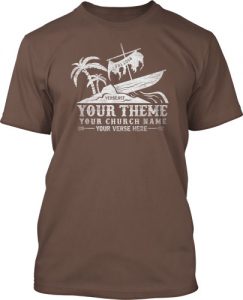 Ahoy Shipmates! Send out an S.O.S. for your shipwrecked crew. This cool Vacation Bible School t-shirt matches your island themed event coming up in Summer 2018. Customize the colors, styles, and then add your own theme, verse, and church name. Your VBS T-Shirts designer can do it all! Just ask.