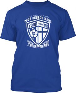 Bring the heat to your VBS with this cool FIFA inspired t-shirt design. Your kids and staff will love the classic look. Don't worry, it's all customizable. Change the colors. Change the slogan. Change the verse. Change the SPORT! Whatever you need, your professional designer will make your design dreams come true.