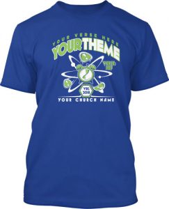 Dude! This shirt’s about to get loud in an extreme themed Vacation Bible School t-shirt design everybody will wear on high volume. Don’t worry. We can customize this whole shirt from top to bottom. Fast forward the theme. Rewind the verse. Turn up your church name. All you have to do is ask your VBS T-Shirts designer. We got you, bro!