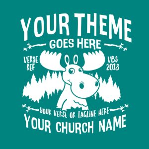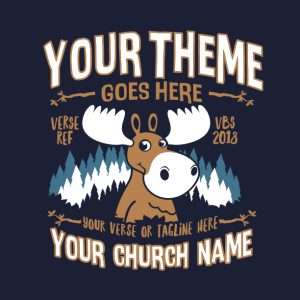 Mooooooooose! Come explore the great outdoors with this classic moose themed Vacation Bible School t-shirt design. Your moose is loose, but your VBS t-shirt looks awesome. And guess what? Your VBS t-shirt designer can customize everything about it. Want different colors? Change the verse or theme name? You got it. Want to make the moose a chicken? Well, that's not exactly what we had in mind, but we can do it! Just ask.