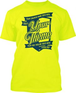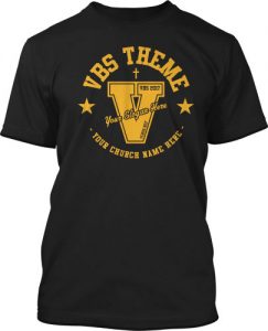 Stand up and shout for God! This all-star design is ready to the world your church is victorious with God. Gold color, bright stars, letter 'V' for victory and victorious, and your all-star church. Don't forget about your bomb VBS theme too.