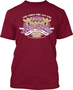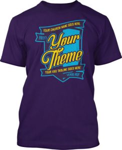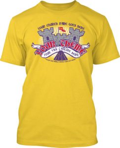 Ready for some medieval fun? Bring your games, tournaments, songs, and crew. We'll bring this castle, along with your theme and church name. And any color shirt and ink you'd like. Even multiple color shirts for your different groups.