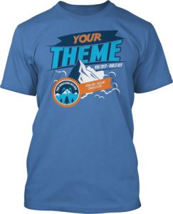 This superhero is flying off to see the God good is doing! And his next stop is checking out your VBS this year. Be ready for him by grabbing some heroic gear with equally heroic designs. Don't forget your church name and theme most of all. And your tagline to sum it all up.