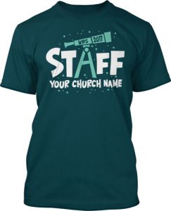 VBS can get a little crazy. Especially with all the members bustling from station to station. Make sure you always know where your leaders are with this shirt. 'Staff' in large letters...and glow ink. You know, just in case they end up working late for another awesome tomorrow.