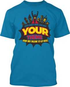 Explosions! Stars! City! This design flat-out says heroic. All it's missing is your fabulous church. Oh and your theme of course. Along with your verse. Discover your strength in God and see just how many heroes exist.
