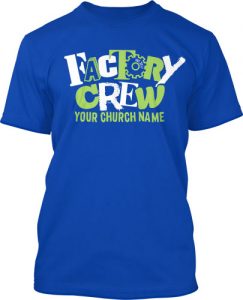 It's time to spark your creative side! And this typography shirt is a great starting point. Different font, gear for a letter, and even your VBS year sitting inside said gear. So many elements coming together to create an awesome design for your factory creation.