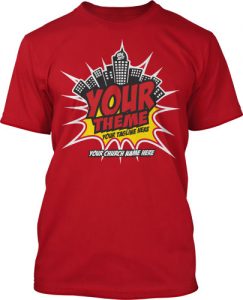 Kabam and kablam! Be ready to save the day at VBS. Equip your team with this design, and watch them have a super good time. And order bright colored shirts to make your heroes stand out above the crowd.