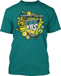 Grab your tools and start tinkering! Build, re-think, and build again at VBS while God guides your factory crew. Have a blast with all these gears and add your own theme for extra fun. Place your tagline and verse and your shirts are all set for a good time.