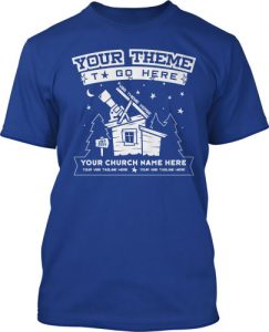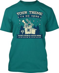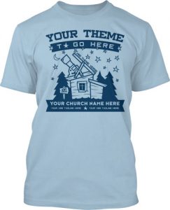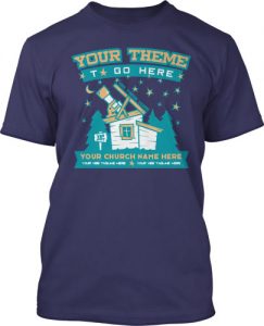 Galaxies, star clusters, outer space, oh my! And our God created it all. Discover His wonders at VBS this year as your group rocks this design. Perfect for all your space expeditions with this cartoon style. Have fun with the colors and make yours shirts out of this world.