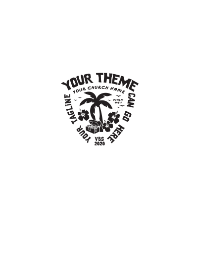 Get ready to embark on a tropical journey to find the one true God! Your trail will surely be lined up with lush palm trees and beautiful flowers as you search for the greatest treasure of them all. Add your church name, switch up the colors, and go!
