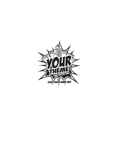 Discover the greatest hero of all time: God! There’s nothing He can’t do and your hero VBS is perfect to host all His greatness. Your theme is ready for its heroic closeup with the city close behind. And add a starburst for extra comic hero action.